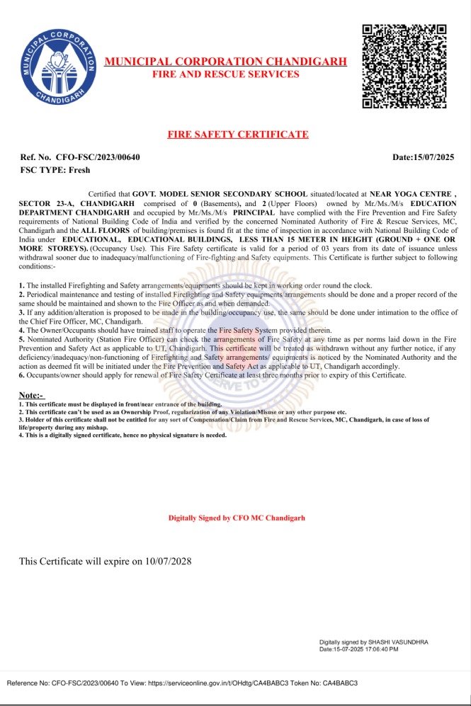 | 1 | NAME OF THE SCHOOL | GOVT. MODEL SENIOR SECONDARY SCHOOL, SECTOR – 23 A (NYC), CHANDIGARH |